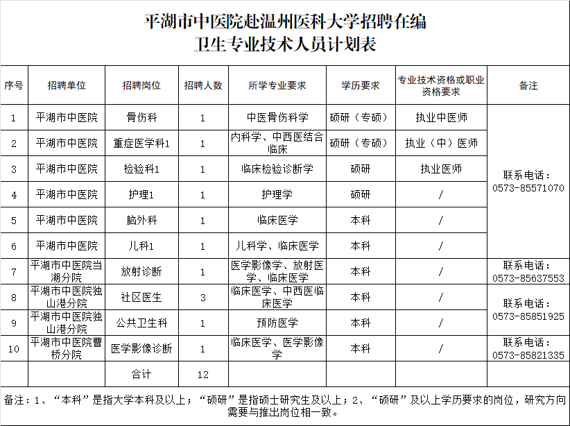 浙江省嘉興市平湖市中醫(yī)院醫(yī)共體校園招聘在編衛(wèi)生專業(yè)技術(shù)人員12人