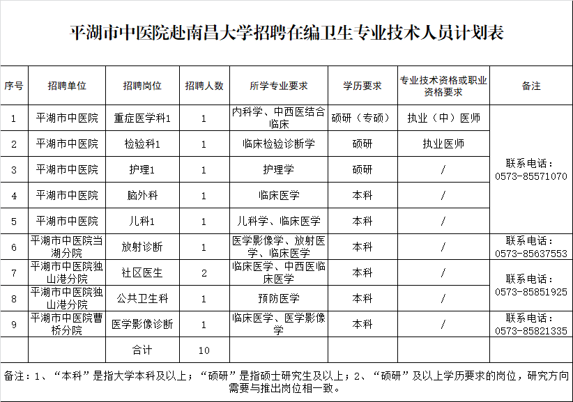 浙江省嘉興市平湖市中醫(yī)院赴南昌大學(xué)招聘在編衛(wèi)生專業(yè)技術(shù)人員10人