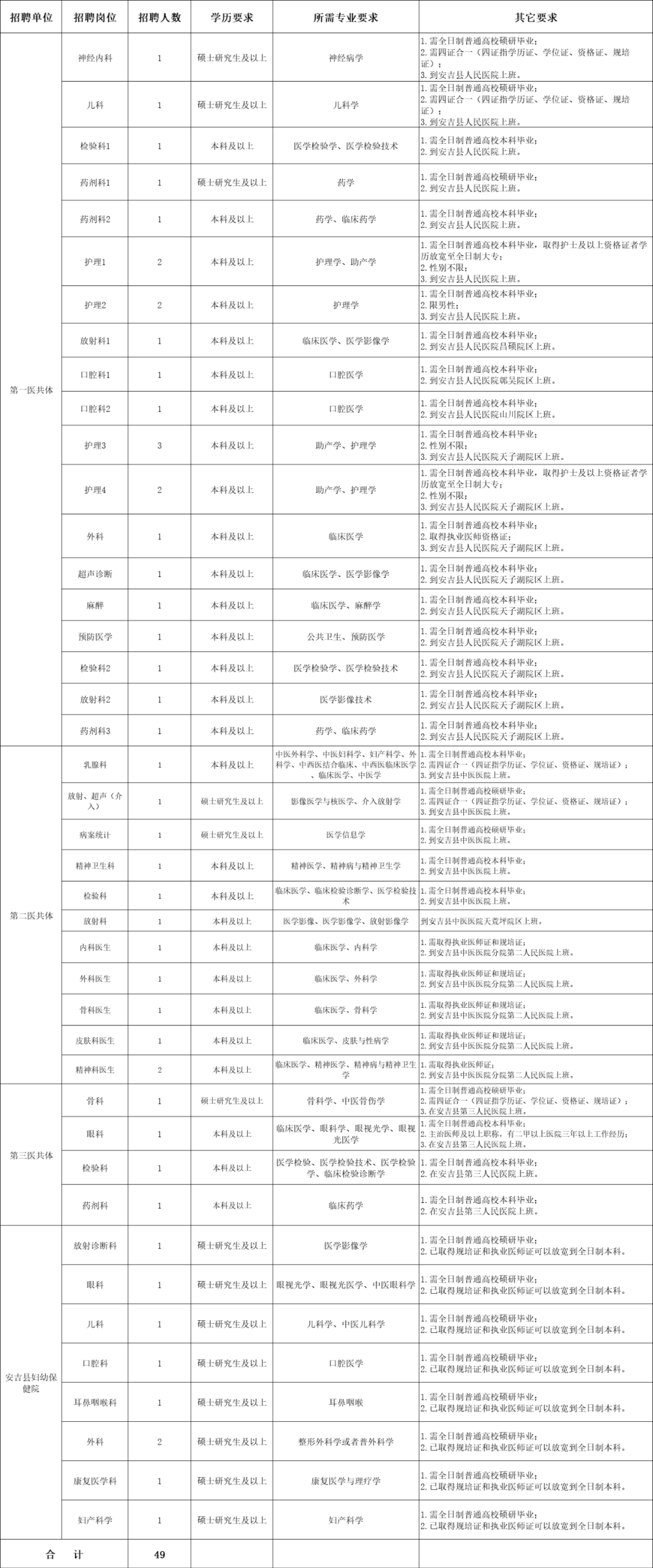 湖州市安吉縣衛(wèi)生健康系統(tǒng)事業(yè)單位招聘醫(yī)療衛(wèi)生專業(yè)人員49名