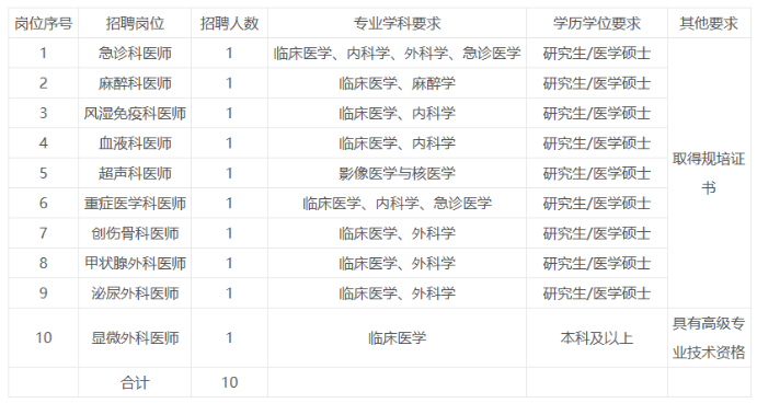 (三)具有相應的專業(yè)知識和能力水平,符合招聘崗位所需的專業(yè)、學歷學位和其他要求。應聘人員的學歷、學位證書須于2023年10月25日前取得(留學人員需提供教育部留學服務中心出具的國外境外學歷、學位認證書)。6-9號崗位具有高級專業(yè)技術(shù)資格者學歷學位放寬至本科學士,規(guī)培證書不作要求。
