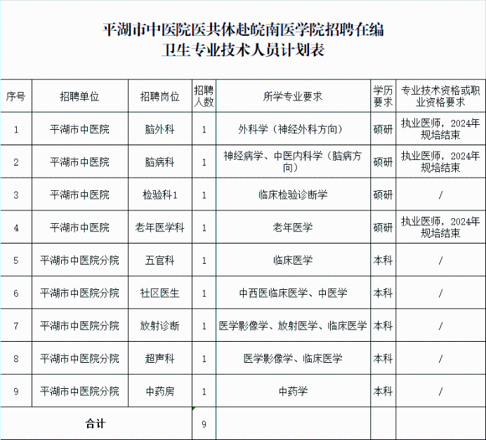 平湖市中醫(yī)院招在編衛(wèi)生專(zhuān)業(yè)技術(shù)人員9名