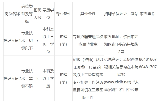杭州市西溪醫(yī)院招事業(yè)編制工作人員15名