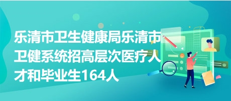 樂清市衛(wèi)生健康局樂清市衛(wèi)健系統(tǒng)招高層次醫(yī)療人才和畢業(yè)生164人