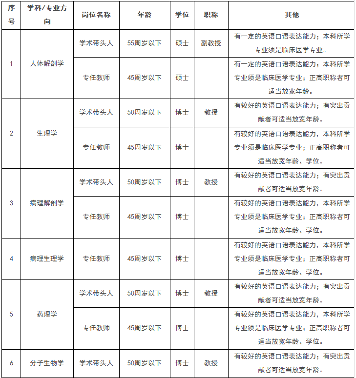 樹(shù)蘭國(guó)際醫(yī)學(xué)院2019年師資招聘一覽表