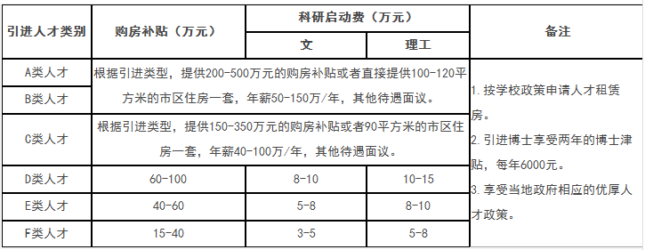 除國(guó)家和省規(guī)定的事業(yè)單位人員享受的基本待遇外,我校對(duì)引進(jìn)的高層次人才給予優(yōu)惠待遇如下: