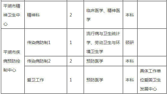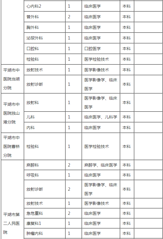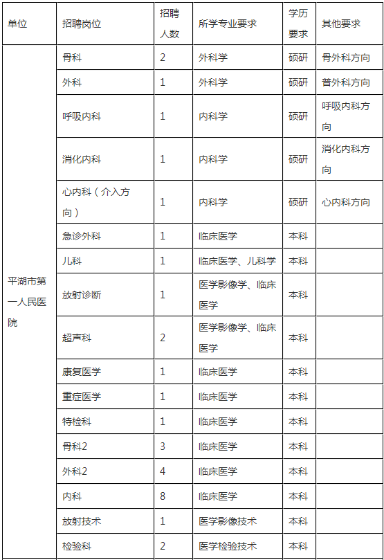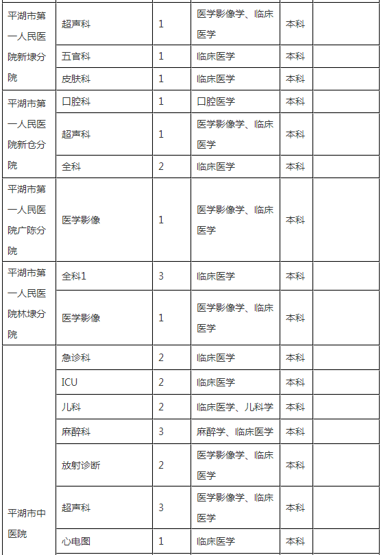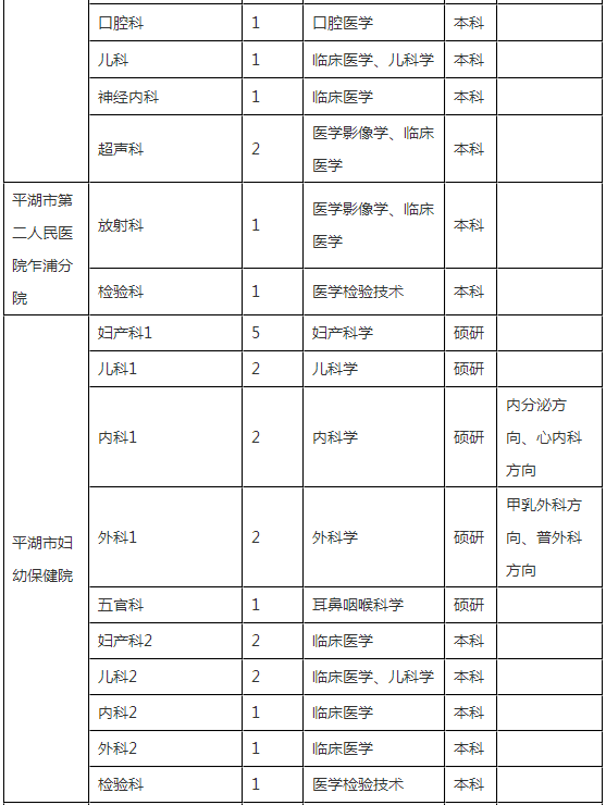 1.平湖市第一人民醫(yī)院(不含分院)、平湖市中醫(yī)院(不含分院)、平湖市婦幼保健院、平湖市疾病預(yù)防控制中心公開招聘崗位需符合下列條件之一: