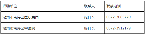 (三)對(duì)招聘工作及相關(guān)信息有異議的,請(qǐng)?jiān)诠婀贾掌?日內(nèi)向湖州市南潯區(qū)衛(wèi)生健康局組織人事科反映,以便及時(shí)研究處理。本公告未盡事宜,由南潯區(qū)衛(wèi)生健康局負(fù)責(zé)解釋,咨詢電話:0572-3020672(周一至周五,節(jié)假日除外);監(jiān)督電話(區(qū)紀(jì)委監(jiān)委派駐區(qū)委宣傳部紀(jì)檢組):0572-3090575(周一至周五,節(jié)假日除外)。
