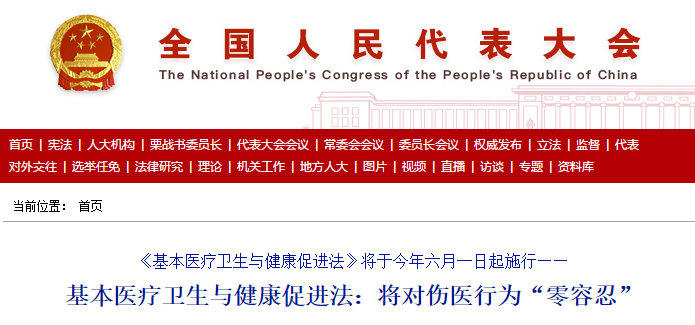 對(duì)傷醫(yī)行為“零容忍”:《基本醫(yī)療衛(wèi)生與健康促進(jìn)法》今年6月1日開始執(zhí)行!