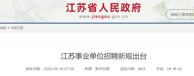 今天,江蘇省人民政府頒布了《江蘇事業(yè)單位招聘新規(guī)出臺(tái)》,通知中要求加大高校應(yīng)屆畢業(yè)生的招聘力度,原文如下: