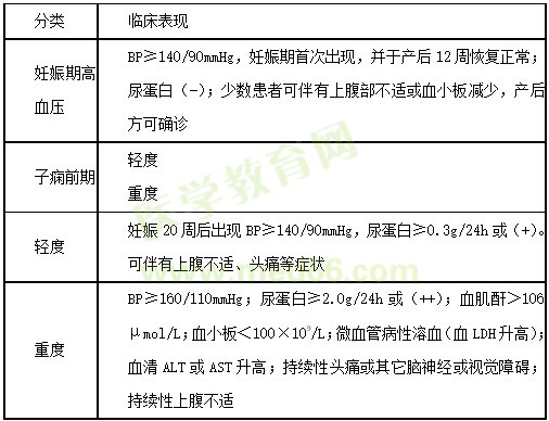 妊娠期高血壓疾病分類與臨床表現(xiàn)