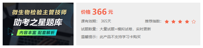 微生物檢驗(yàn)主管技師助考之星產(chǎn)品包含題庫、考前金題卷、考前??季?,內(nèi)容緊扣考試大綱、考試教材,符合考試題型與考試科目。復(fù)習(xí)輔導(dǎo)資料豐富,免費(fèi)試用、試題庫大,輔導(dǎo)軟件收錄大量習(xí)題,并提供解題方法、答題技巧、考試要點(diǎn)精解?!澳M題版”是依據(jù)教材大綱推出的模擬題試卷產(chǎn)品,根據(jù)近年考試的考點(diǎn)編寫出題,進(jìn)行模擬真實(shí)考試仿真模擬題!