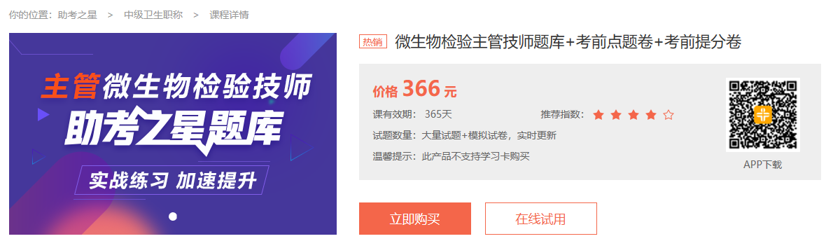 下載地址:微生物檢驗(yàn)主管技師助考之星題庫(kù)下載入口>>