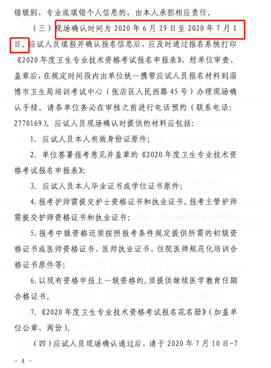 山東淄博新冠一線人員2020年衛(wèi)生資格考試報(bào)名現(xiàn)場(chǎng)確認(rèn)時(shí)間及材料