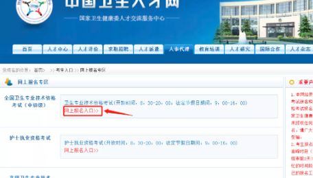 二、點擊衛(wèi)生專業(yè)技術(shù)資格考試“網(wǎng)上報名入口”。