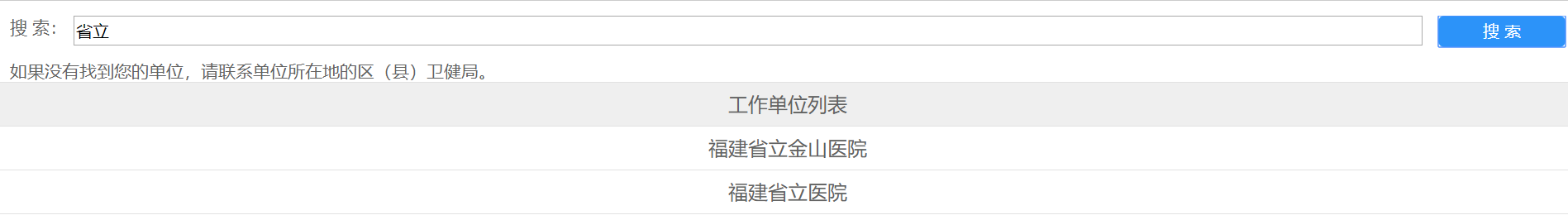 2、單位選擇通過搜索框進行搜索,例如“福建省立醫(yī)院”,輸入“省立”即可找到;