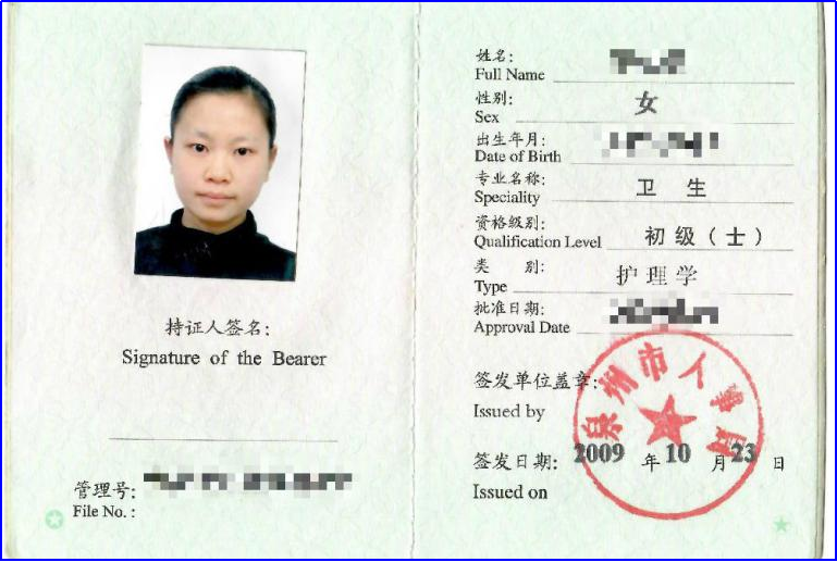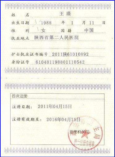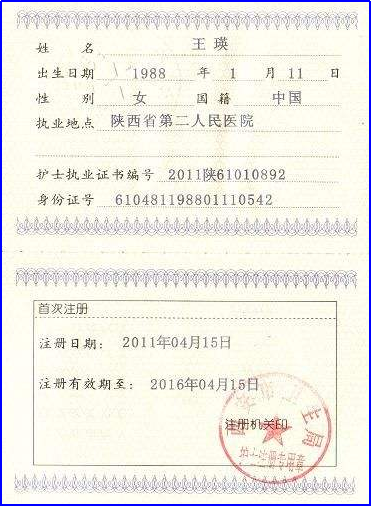 證件類型 | 護士執(zhí)業(yè)證書(醫(yī)師執(zhí)業(yè)證書) | ||