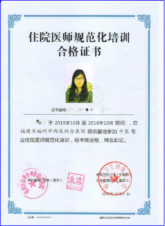 證件類型 | 住院醫(yī)師規(guī)范化培訓合格證書 |