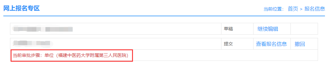 個別單位的考生報名提交后也可能會直接到報名點進行審核,以實際情況為準,考生提交后可以在頁面上查看當前審批節(jié)點信息。