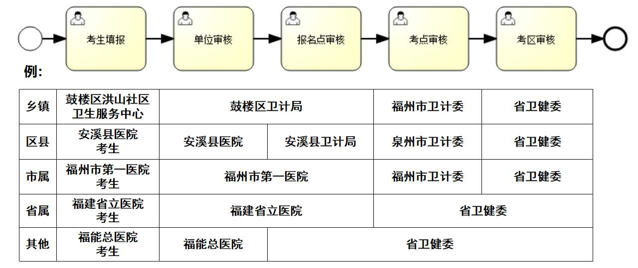 紅色標記為“福建省衛(wèi)生專業(yè)技術資格考試預報名系統(tǒng)”正常通過的流程;