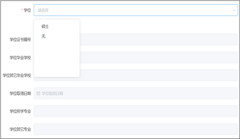 如無學(xué)位,請在“學(xué)位”中選擇“無”。
