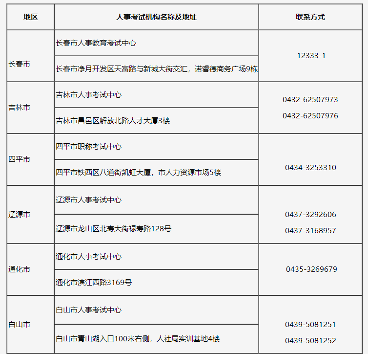 附件2:吉林省人事考試機(jī)構(gòu)現(xiàn)場(chǎng)確認(rèn)地點(diǎn)及聯(lián)系方式