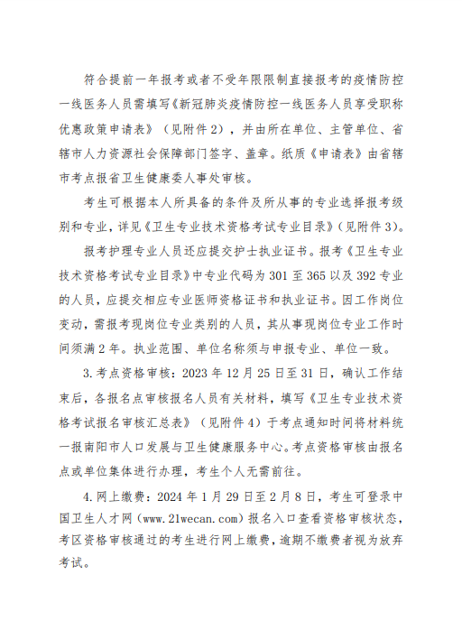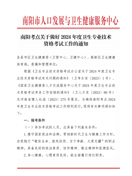 南陽考點關(guān)于做好2024年度衛(wèi)生專業(yè)技術(shù)資格考試工作的通知