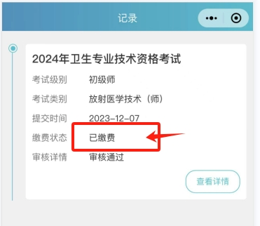 繳費成功后,請務(wù)必在手機端“湖北衛(wèi)生人才”小程序確認繳費狀態(tài)變?yōu)椤耙牙U費”,如下圖所示: