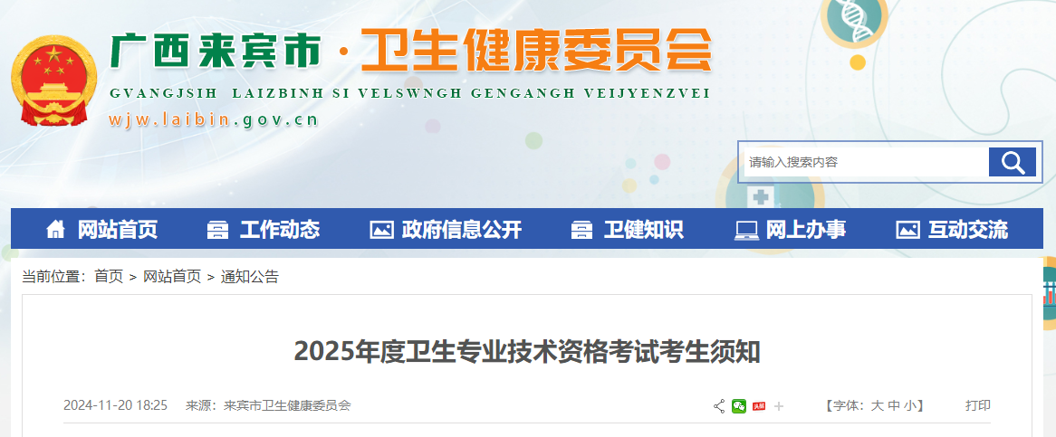 廣西來賓2025年度衛(wèi)生專業(yè)技術(shù)資格考試考生須知