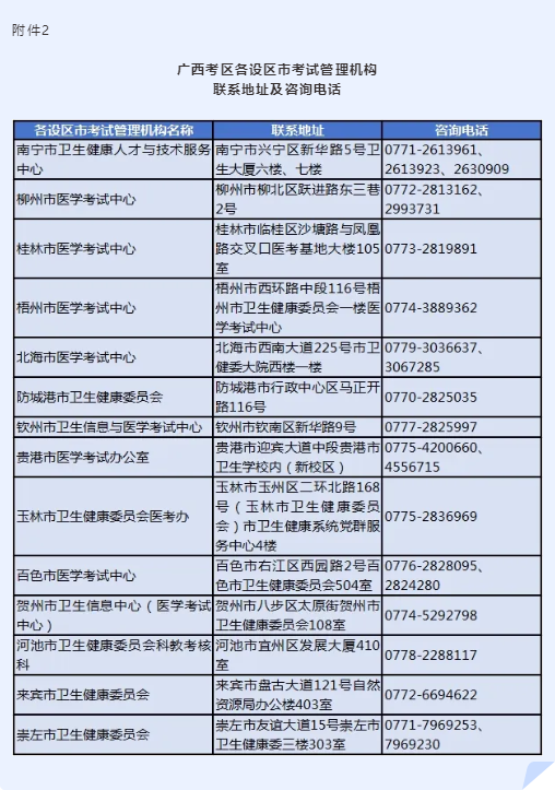 2.廣西考區(qū)各設(shè)區(qū)市考試管理機(jī)構(gòu)聯(lián)系地址及咨詢電話
