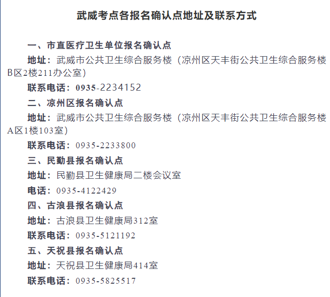 3.武威考點各報名確認點地址及聯(lián)系方式