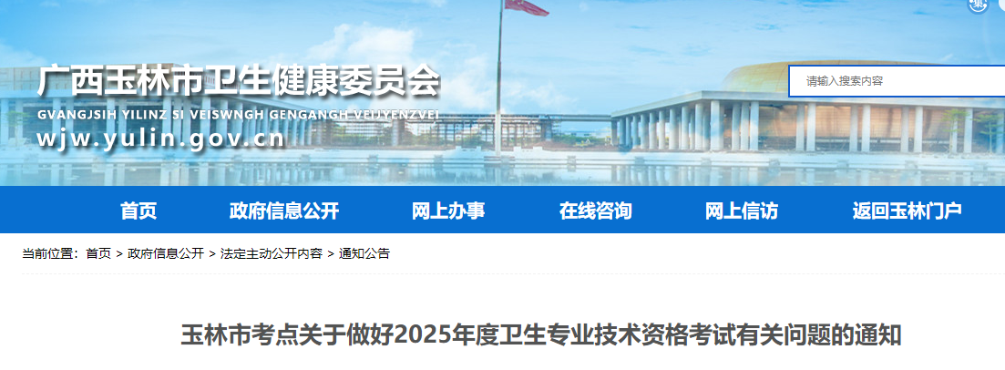 玉林市考點關于做好2025年度衛(wèi)生專業(yè)技術資格考試有關問題的通知