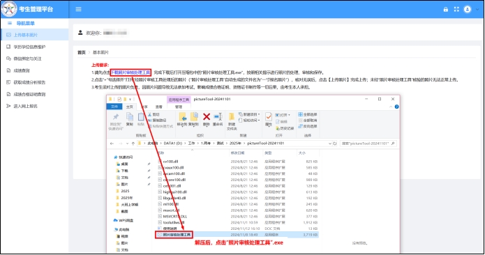 (1)認(rèn)真閱讀上傳照片要求,下載“照片審核處理工具”,解壓后點擊“照片審核處理工具.exe”。