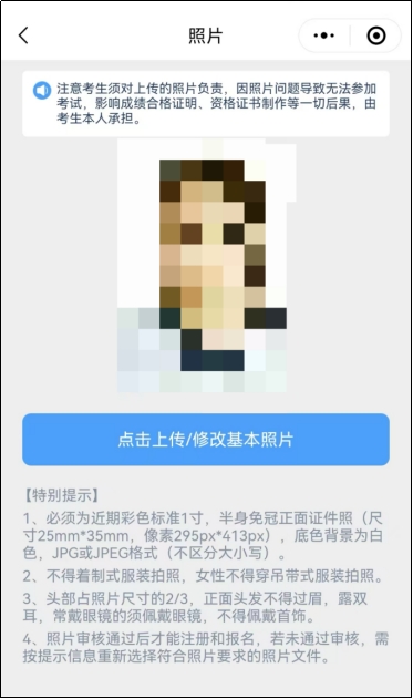 (4)照片上傳成功后,頁面會顯示考生照片。