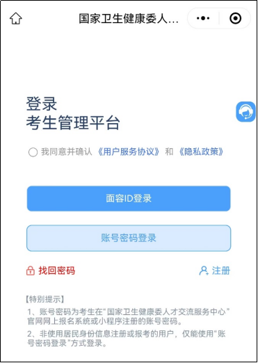 考生注冊并完成個人信息維護(hù)后,可通過“面容ID登錄”或“賬號密碼登錄”考生管理平臺。