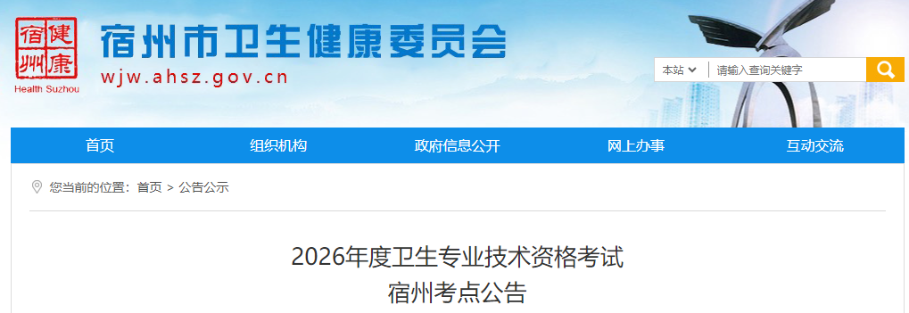 2026年度衛(wèi)生專業(yè)技術資格考試宿州考點公告