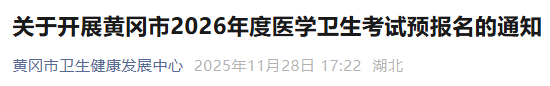 關(guān)于開展黃岡市2026年度醫(yī)學(xué)衛(wèi)生考試預(yù)報名的通知