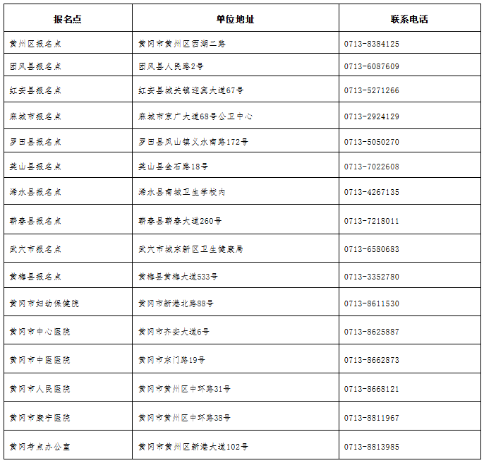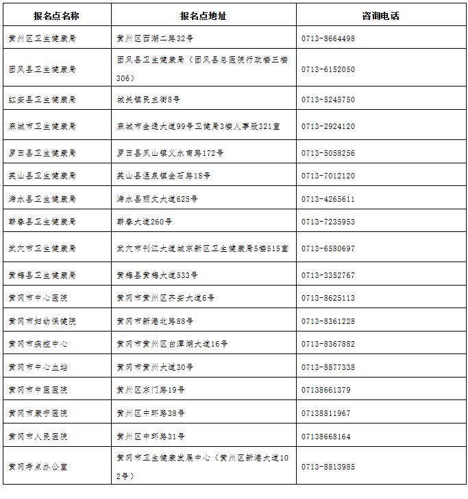 附件2:黃岡考點2026年執(zhí)業(yè)醫(yī)師資格考試各報名點咨詢電話