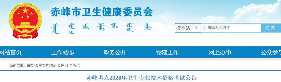 赤峰考點(diǎn)2026年衛(wèi)生專業(yè)技術(shù)資格考試公告