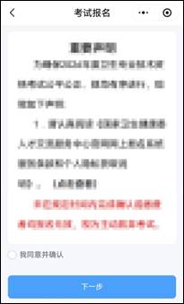 3.認(rèn)真閱讀《重要聲明》和《考生誠信考試承諾書》,確保充分知曉考試相關(guān)規(guī)定和要求,勾選“我同意并確認(rèn)”后點(diǎn)擊“下一步”,進(jìn)入報(bào)名信息填寫頁面。