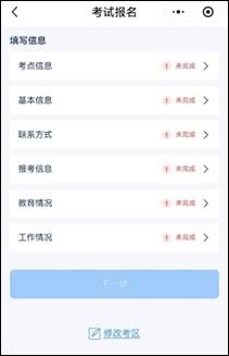 未進(jìn)行報(bào)名確認(rèn)的考生,可在報(bào)名確認(rèn)結(jié)束前撤回信息提交,點(diǎn)擊報(bào)考流程中的【填寫信息】節(jié)點(diǎn),修改相應(yīng)的報(bào)考信息,修改完成后須再次提交并重新打印報(bào)名表。