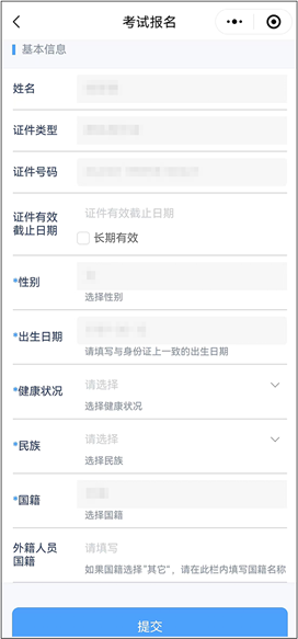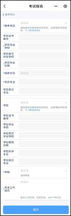 進(jìn)入填寫報(bào)考信息頁面,系統(tǒng)將默認(rèn)顯示上一年度的報(bào)名信息??忌氈痦摵藢键c(diǎn)信息、基本信息、聯(lián)系方式、報(bào)考信息、教育情況、工作情況,可根據(jù)本年度報(bào)名的實(shí)際情況修改,確認(rèn)無誤后點(diǎn)擊提交。
