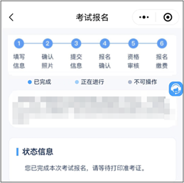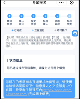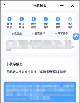 未開通網(wǎng)上繳費(fèi)的考區(qū),【資格審核】節(jié)點(diǎn)變?yōu)樯钏{(lán)色即表示報(bào)名成功。