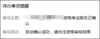 自動(dòng)確認(rèn)成功后,微信公眾號會(huì)發(fā)出報(bào)名已確認(rèn)的“待辦事項(xiàng)提醒”(如下圖),報(bào)名信息將不能撤回提交和修改。