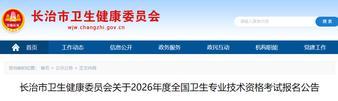 長治市關(guān)于2026年度全國衛(wèi)生專業(yè)技術(shù)資格考試報名公告