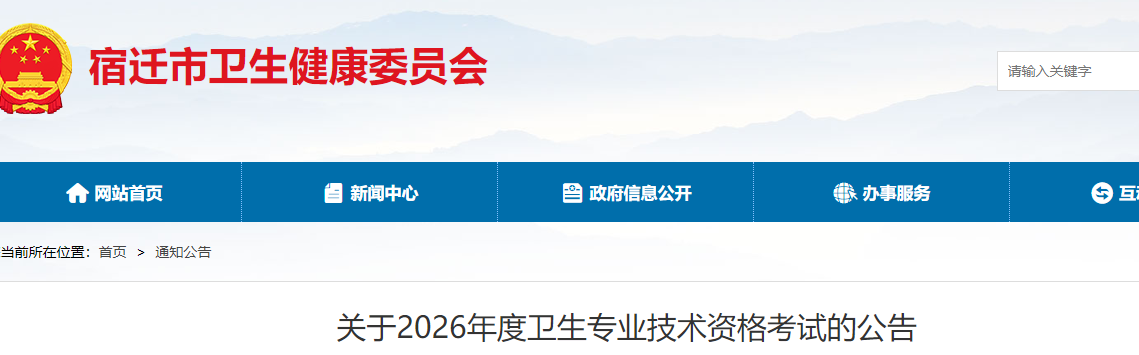 宿遷關(guān)于2026年度衛(wèi)生專業(yè)技術(shù)資格考試的公告