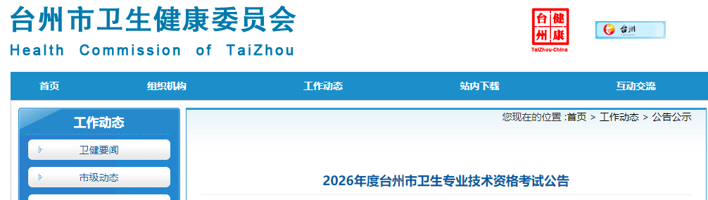 2026年度臺州市衛(wèi)生專業(yè)技術(shù)資格考試公告