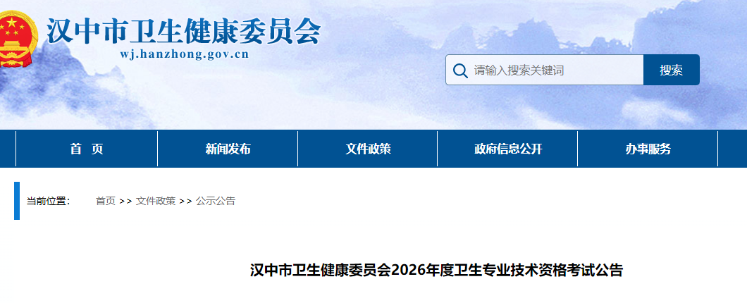 漢中市衛(wèi)生健康委員會2026年度衛(wèi)生專業(yè)技術(shù)資格考試公告