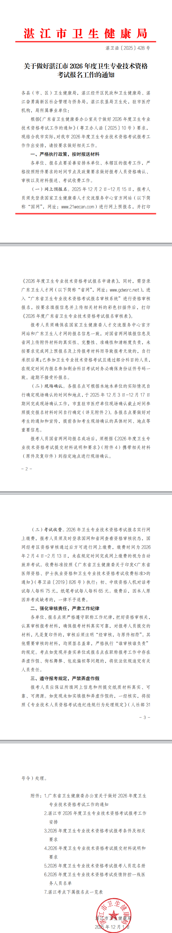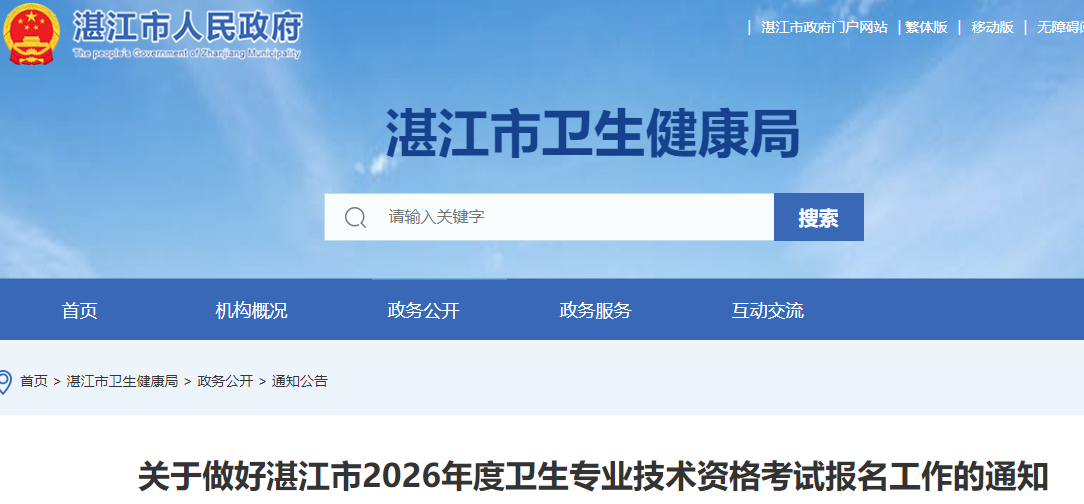 關于做好湛江市2026年度衛(wèi)生專業(yè)技術資格考試報名工作的通知