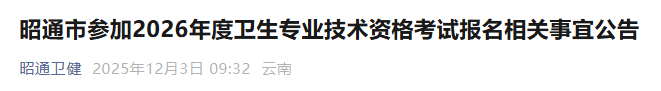 昭通市參加2026年度衛(wèi)生專業(yè)技術(shù)資格考試報(bào)名相關(guān)事宜公告