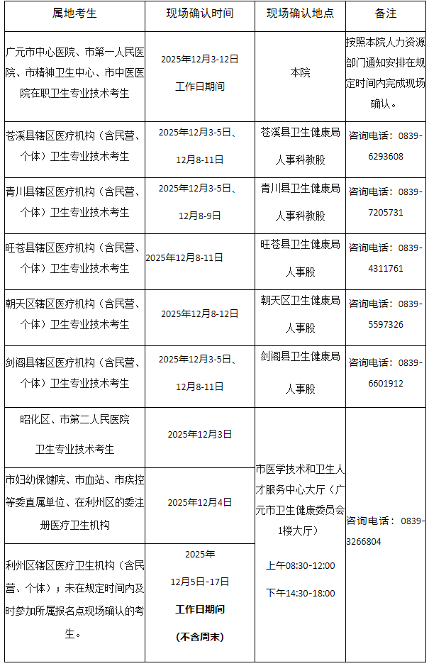 2026年度衛(wèi)生專業(yè)技術(shù)資格考試廣元考點公告